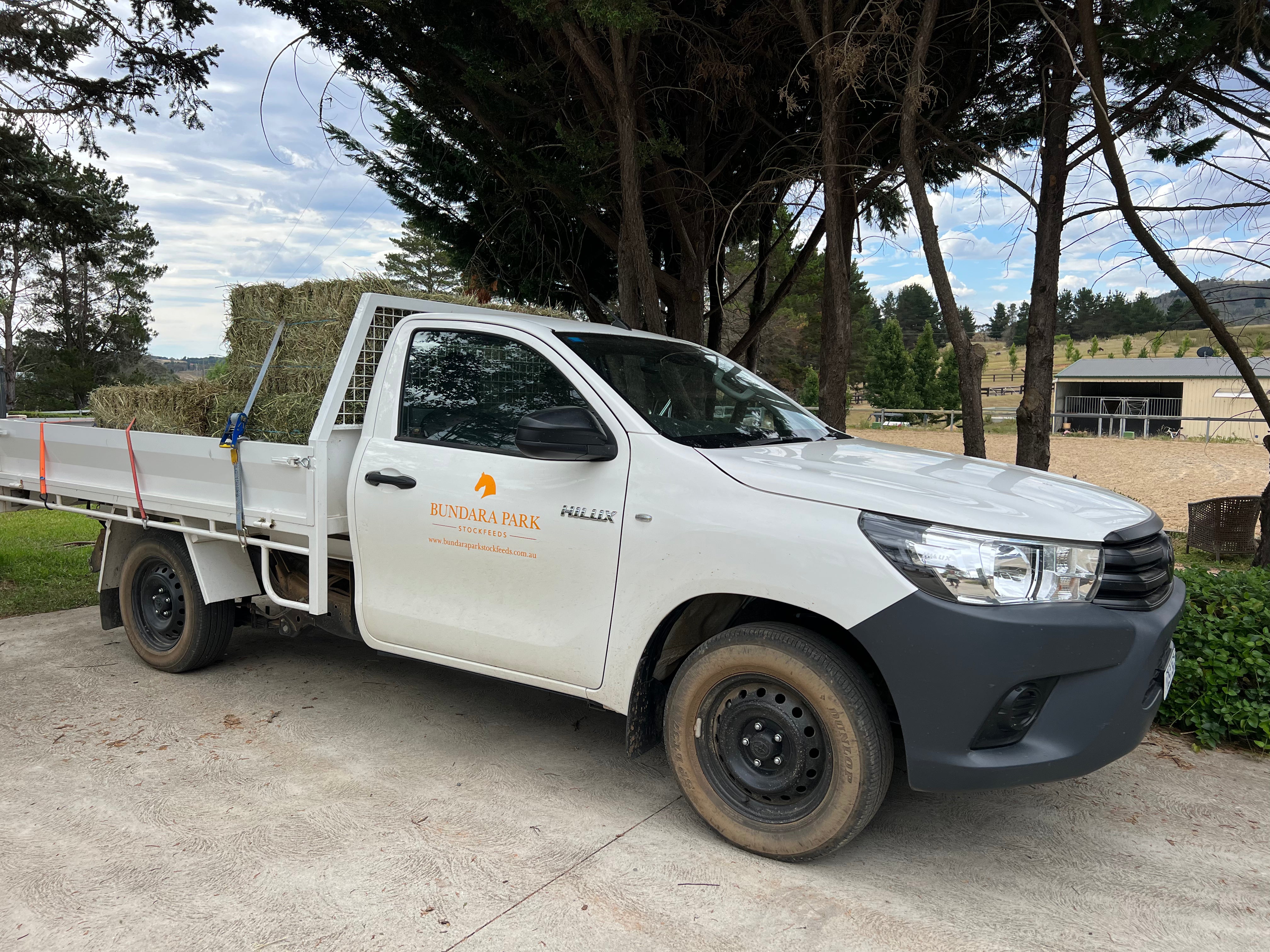 - The tipping Hilux, this ute has become super handy for dropping your round bales where ever you would like for them to go! It is nifty, small and strong - she is yet to dissappoint us!