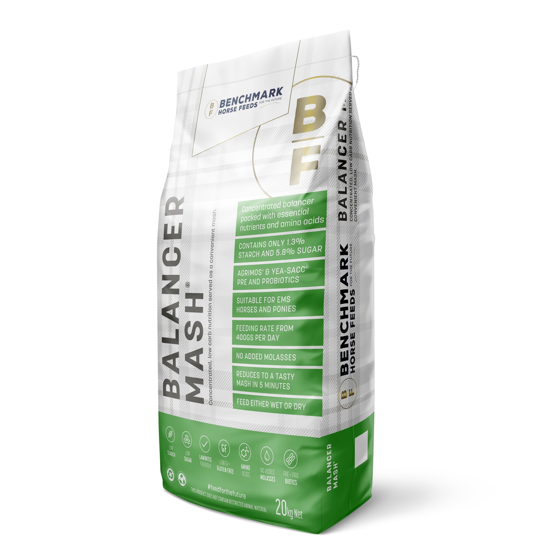 Benchmark Balancer Mash® can be fed alone (with the addition of fibre) or it can be fed in conjunction with Benchmark Super Fibre Mash, grains or a high fat energy source.