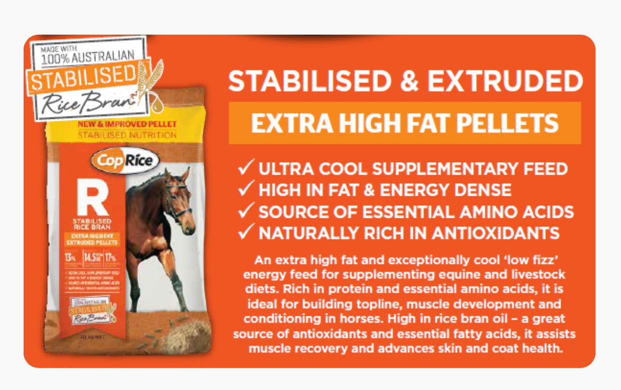 A super-high fat and exceptionally cool ‘low fizz’ energy feed for supplementing equine and livestock diets.