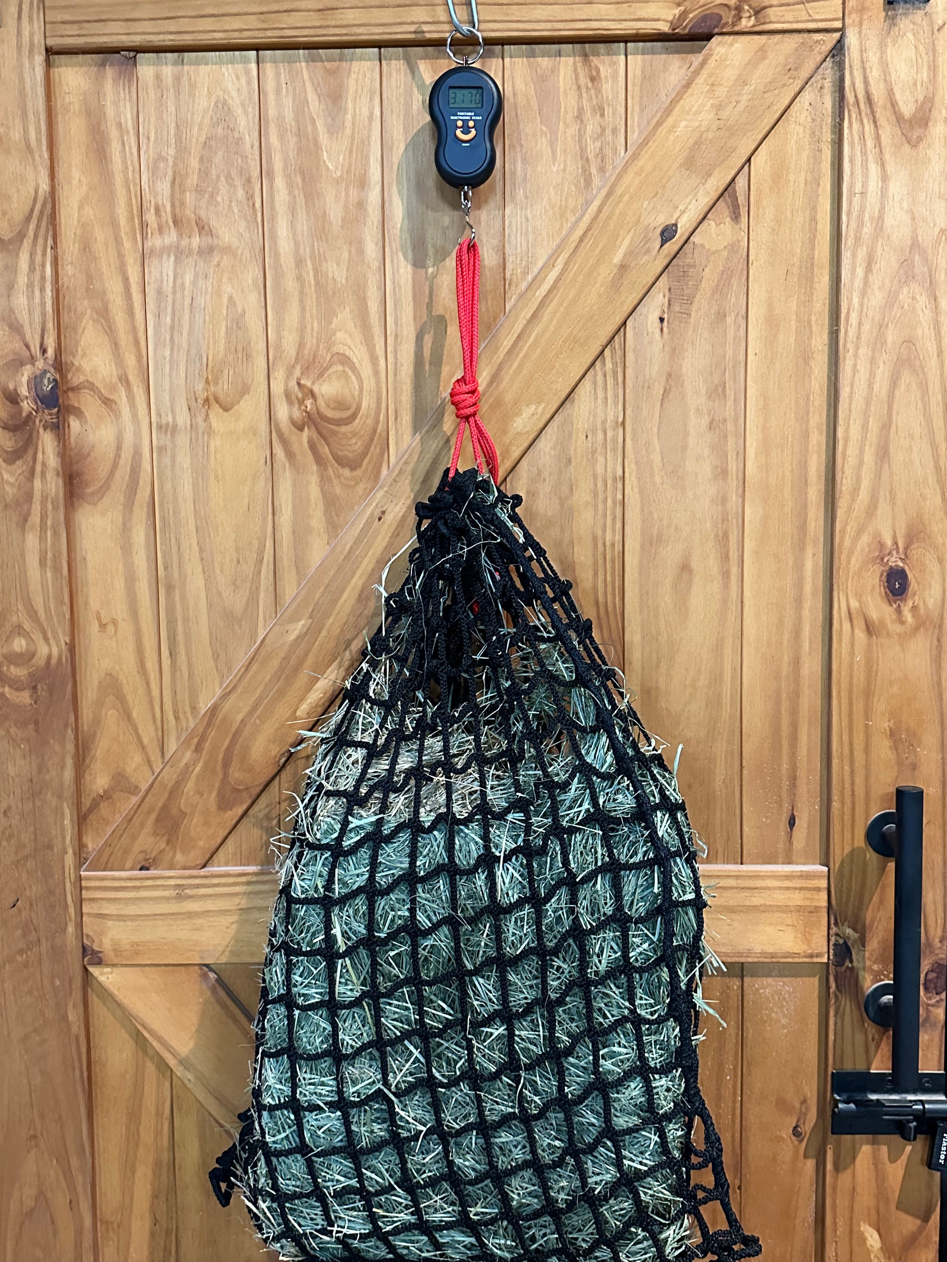 Great little device to allow you to actually weigh your hay net to make sure your horse is getting the right amount of hay/forage that it should be. Can be handheld or hung anywhere to allow ease weighing.