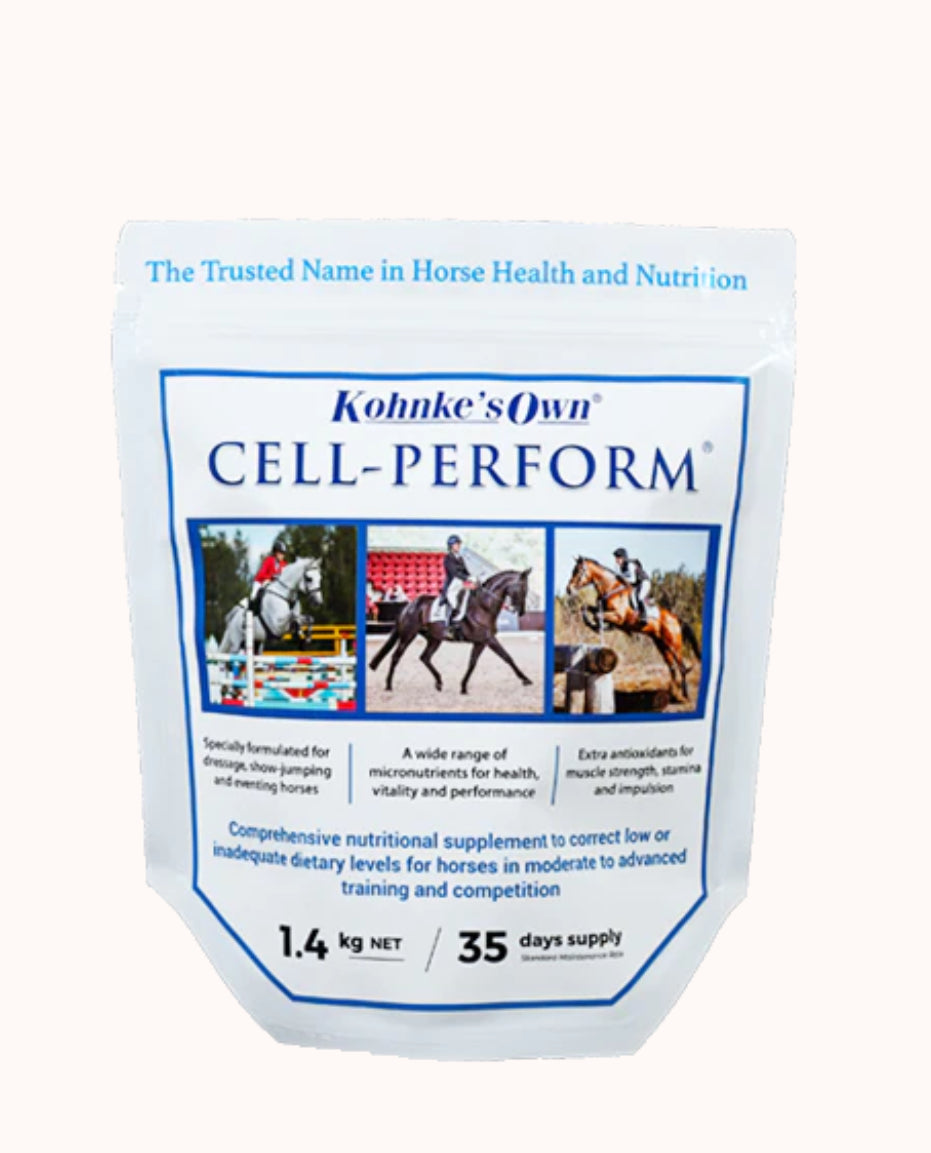 Kohnke’s Own Cell-Perform is a premium supplement containing a complete range of vitamins and minerals which are often low or inadequate in the diets of horses in training and competition.