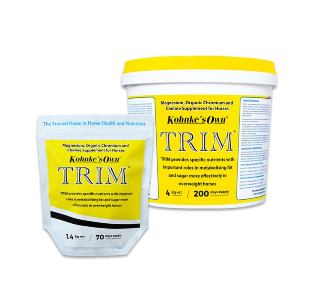 TRIM can be used before the horse is at risk of laminitis or founder, but it can also quickly soften and reduce cresty necks and tail butt fat which are the common signs that body condition of a horse or pony is above the healthy range.